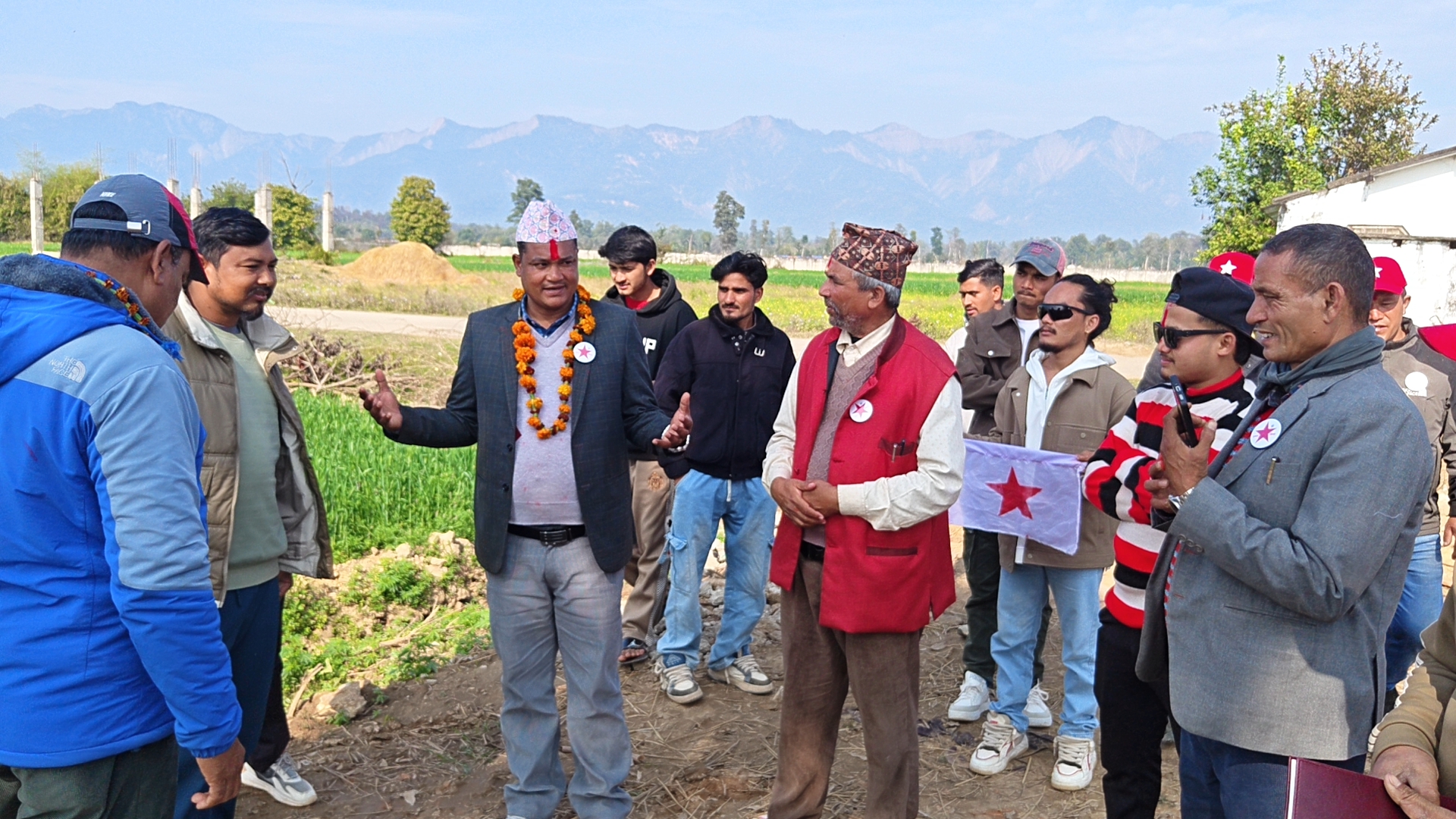 नेपाली कम्युनिस्ट पार्टीबाट कैलाली क्षेत्र नं २ को प्रतिनिधि सभा सदस्य पदका उम्मेदवार नन्दबहादुर साउद ले आफ्नो चुनावी प्रचारप्रसारलाई तीव्रता दिने क्रममा आइतबार कैलाली बर्दगोरिया गाउँपालिका वडा नम्बर ३ मा चुनावी प्रचार तथा घरदैलो कार्यक्रम सम्पन्न गरेका हुन् ।